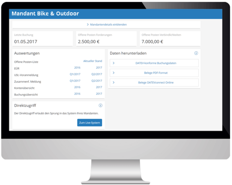 - Direkte Weiterverarbeitung durch die Steuerkanzlei möglich