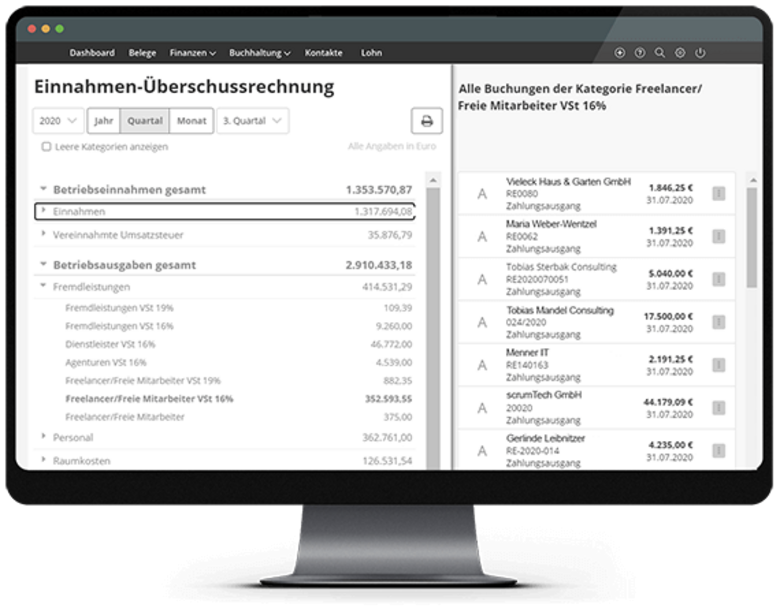 Einnahmen und Ausgaben jederzeit im Blick – unterjährig und zum Jahresabschluss.