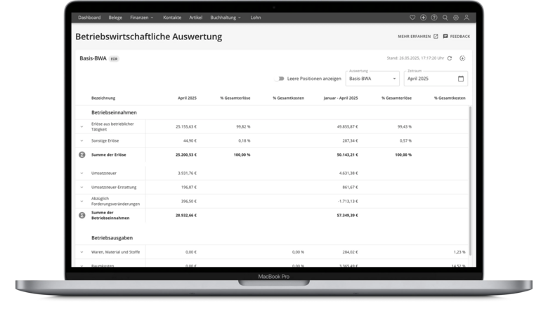 - BWA-Berichte direkt im Programm auf Basis tagesaktueller Daten erstellen