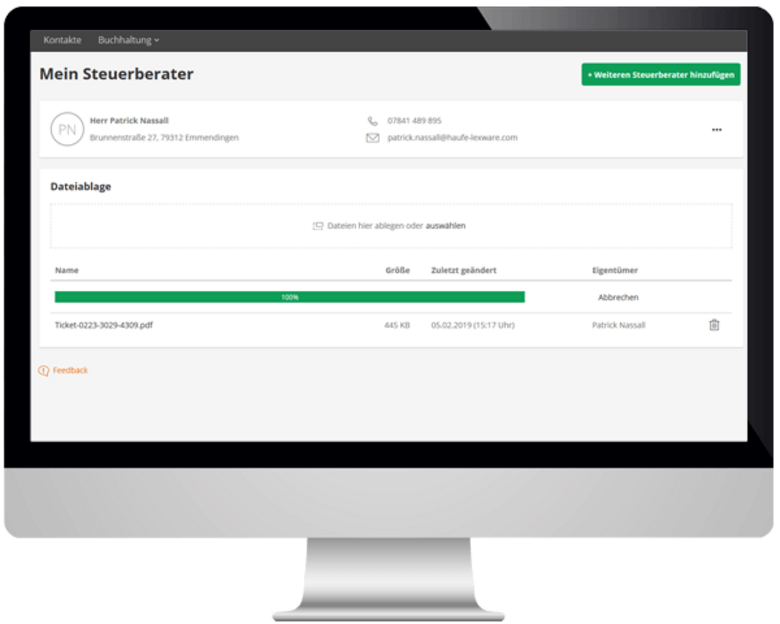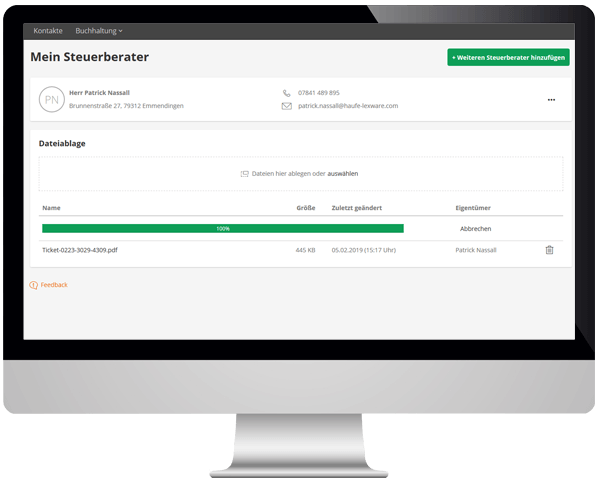 - Steuerberaterzugang ermöglicht Live-Zugriff auf die Buchhaltung