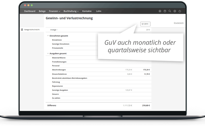 - Rechtssichere GuV mit wenigen Klicks erstellen