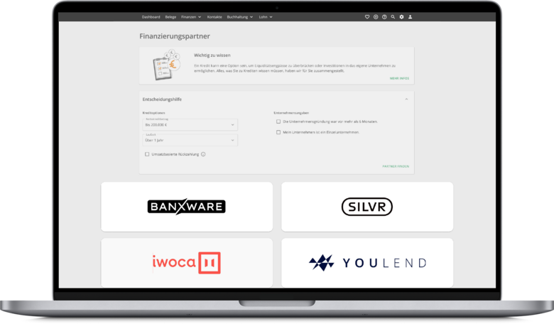Lexware Office überträgt keine Daten an die Kreditanbieter, sondern stellt ausgewählte Partner vor.