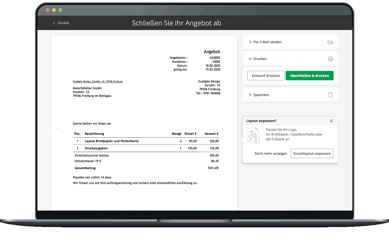 - Für Rechnungen und Angebote geeignet