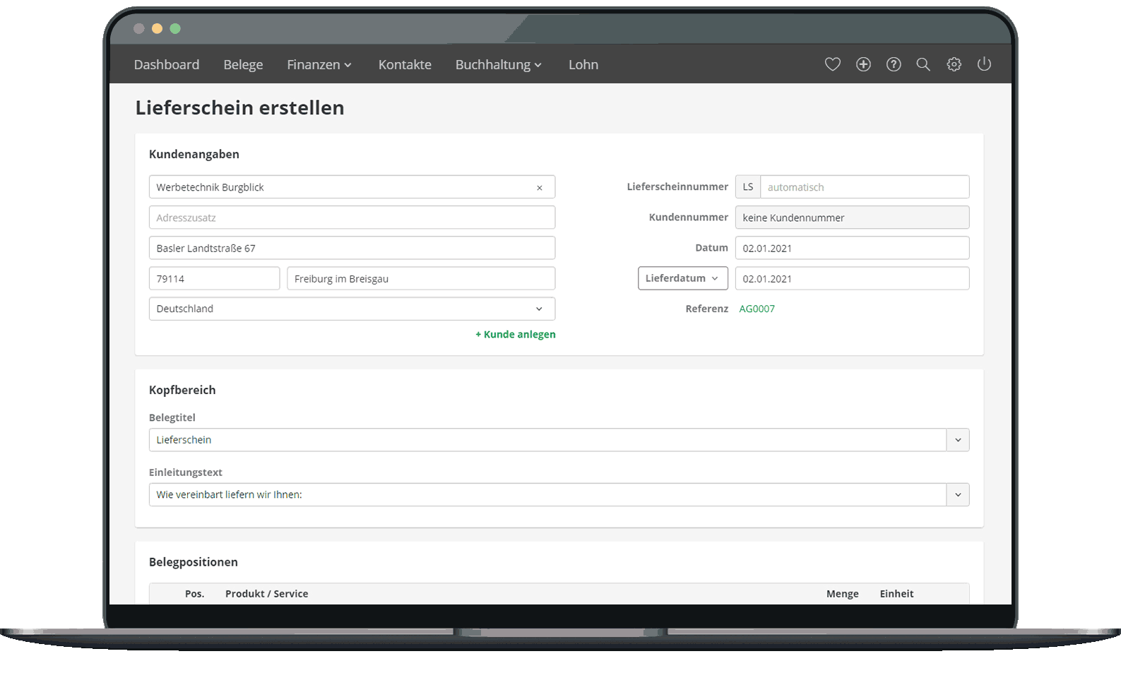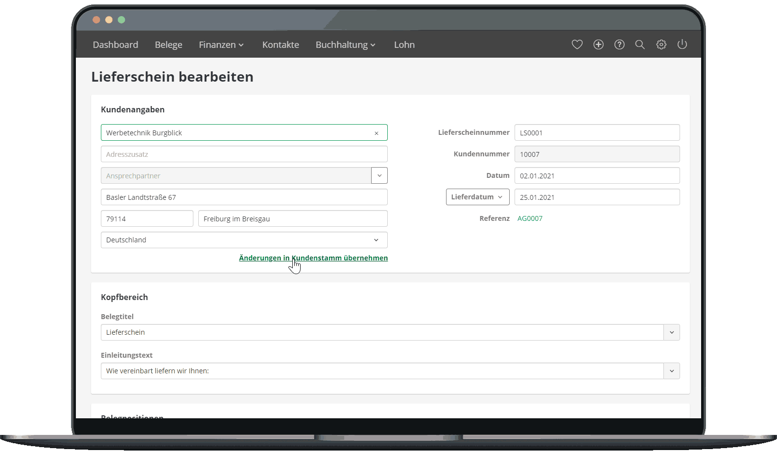 Mit Lexware Office passt du Lieferscheine flexibel an – neue Kunden, Produkte oder Dienstleistungen lassen sich direkt einpflegen.