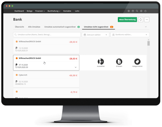 - Automatische Belegzuordnung und Kategorisierung der Zahlungen
