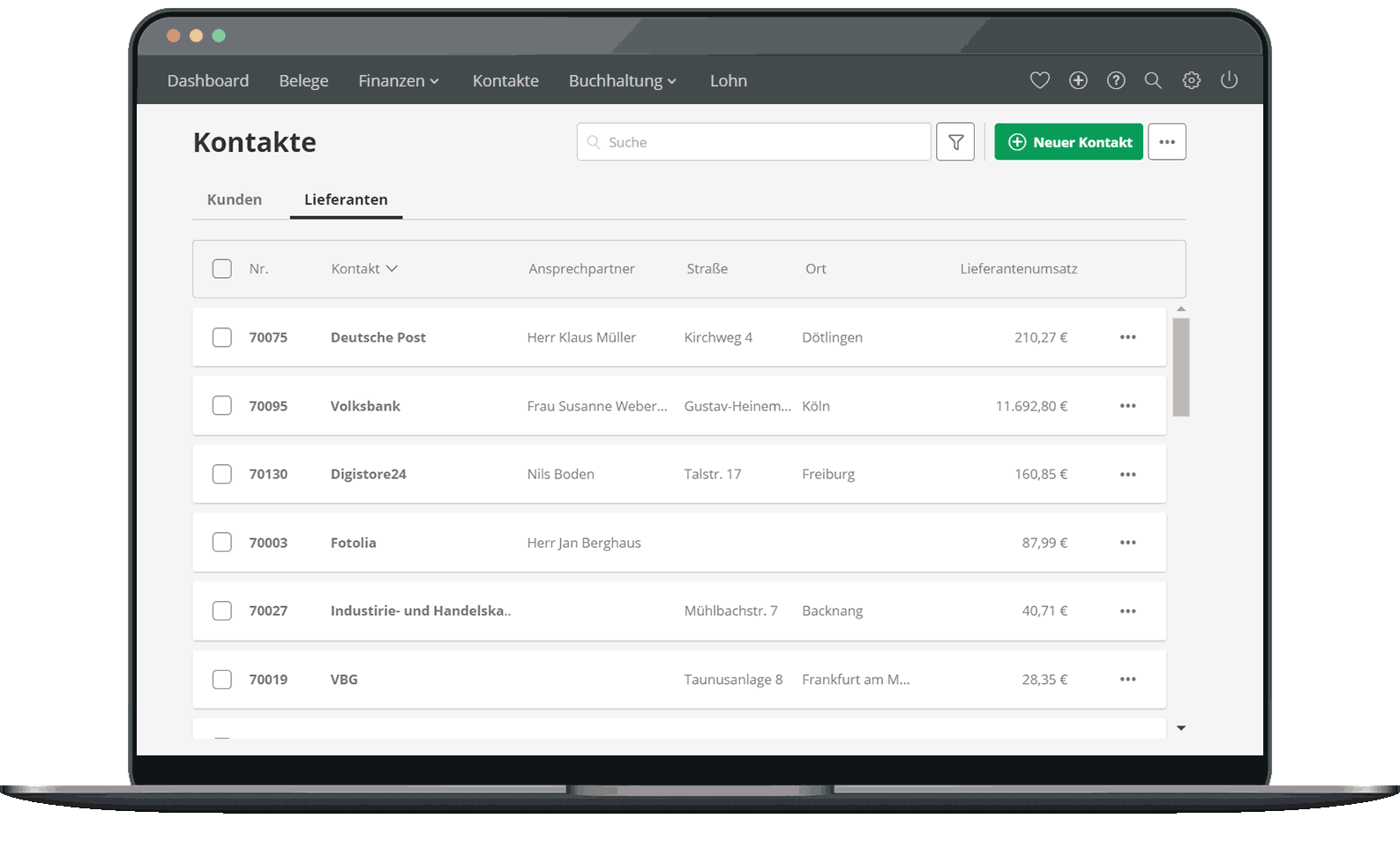 Dank Lexware Office hast du alle Kunden- und Lieferantendaten jederzeit zur Verfügung. Kontakte lassen sich schnell einsehen und detailliert anzeigen.