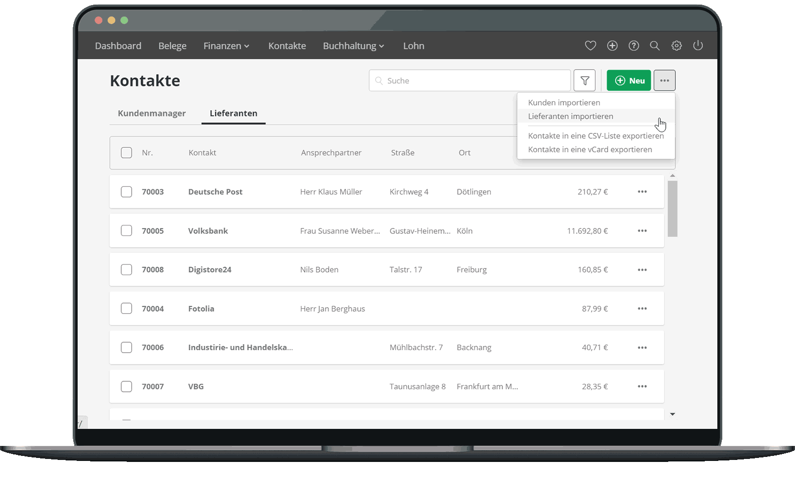 - Kunden- & Lieferanteninfos verwalten, exportieren und mobil nutzen