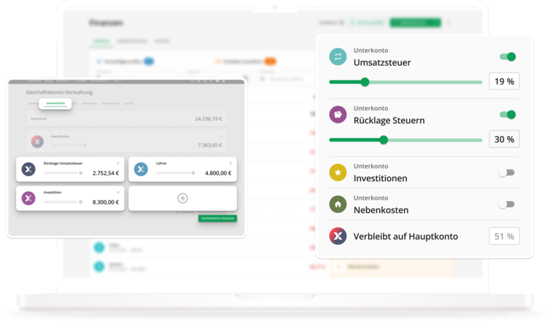 Mit Smart Split teilst du deine Einnahmen schon beim Geldeingang automatisch auf – zum Beispiel für Steuer, Umsatzsteuer oder individuelle Unterkonten. So bist du jederzeit vorbereitet und deine Rücklagen entstehen ganz von allein, ohne dass du dich darum kümmern musst.