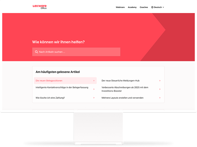 Wenn du ein Desktop-Produkt von Lexware nutzt, findest du weitere Hilfe beim Support für Lexware Desktop-Produkte.