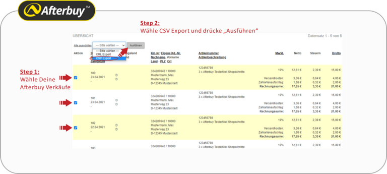 Lehne Dich zurück und lasse Rechnungs- und Kundendaten aus Afterbuy (Amazon, Ebay, Otto und viele mehr) automatisch oder per CSV Massenimport, in deine Lexware Office Buchhaltung einfließen.