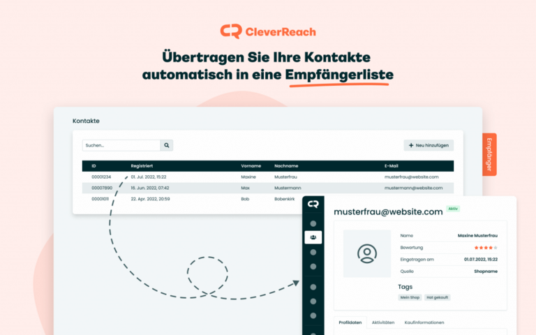 - Wenn Du neu mit E-Mail Marketing startest, werden Deine Lexware Office-Kontakte zu CleverReach® übertragen bzw. bei bereits bestehender CleverReach® Empfängerliste werden Deine CleverReach® Empfänger mit Deinen Lexware Office Kontakten synchronisiert.