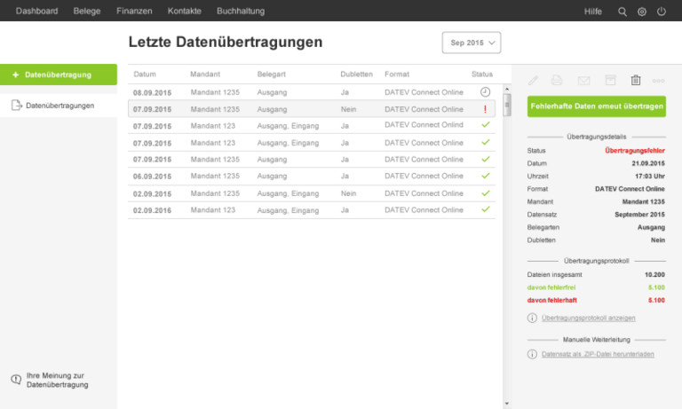 Der digitale Belegaustausch mit den DATEV-Daten-Services reduziert unproduktive Mehrarbeit. Effizienz und Datenqualität werden gesteigert. Hohe Datensicherheit durch eine verschlüsselte Übertragung der digitalen Belege und Buchungsdaten sind selbstverständlich.