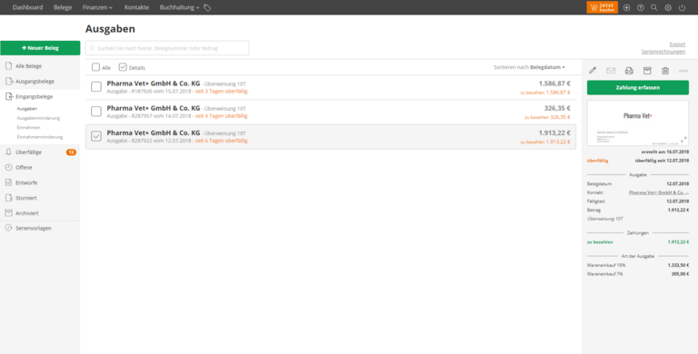 - Eingangsrechnungen und Gutschriften: Nach dem gleichen Prinzip wie die Rechnungen und Gutschriften an deine Kunden ist es möglich, Eingangsrechnungen deiner Lieferanten und Ausgaben direkt nach Lexware Office zu buchen.