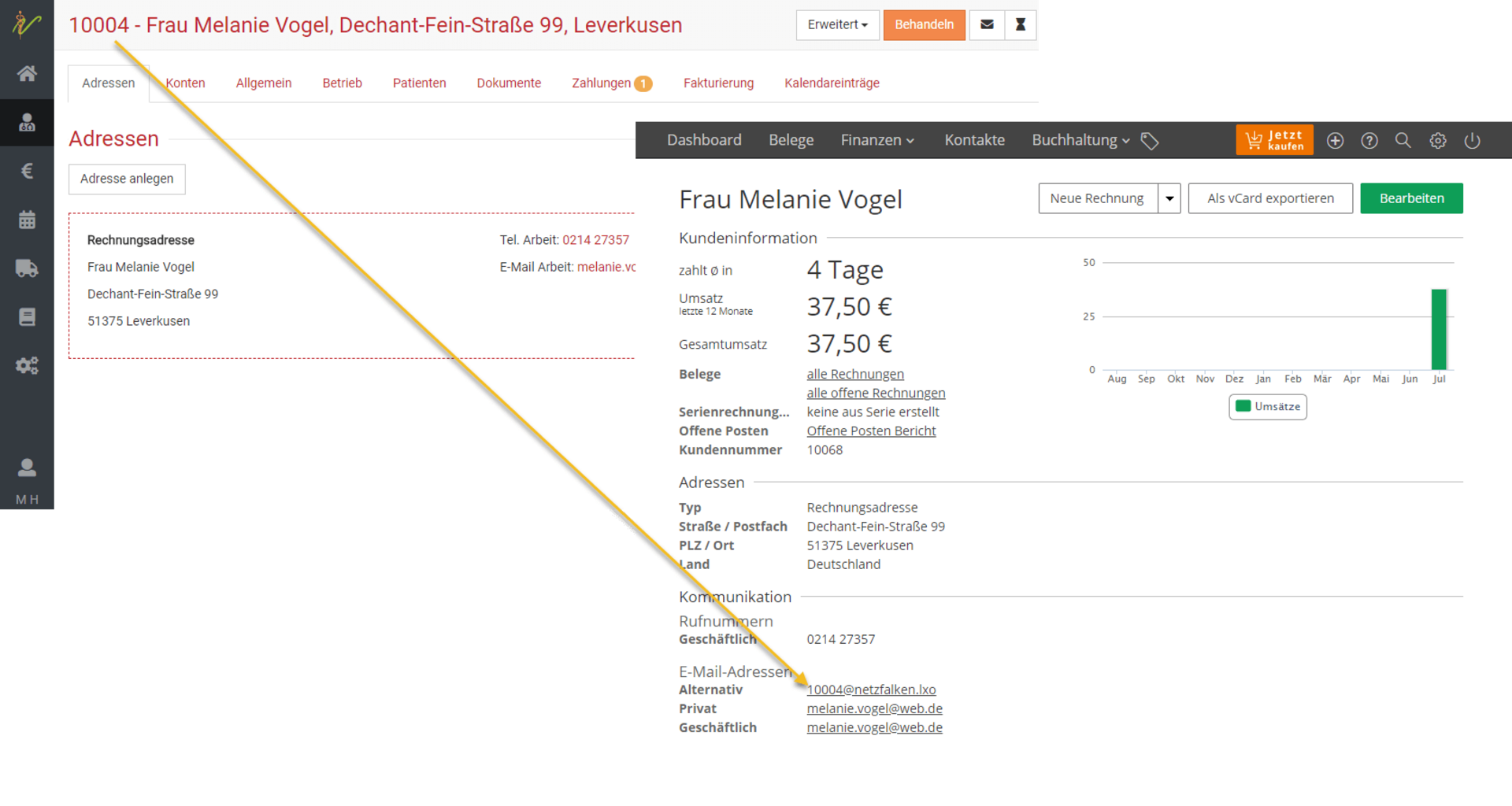 - Automatische Übertragung und Archivierung der steuerrelevanten Unterlagen der Praxis zu Lexware Office