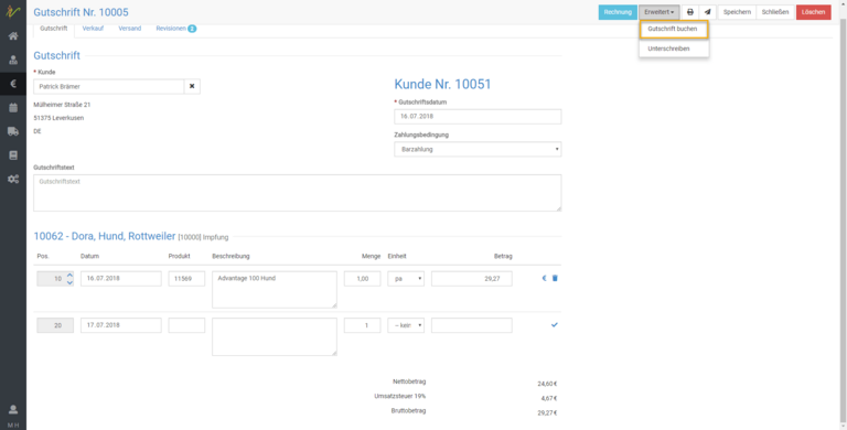 - Gutschrift: Gutschriften aus debevet können nach dem gleichen Prinzip wie Rechnungen nach Lexware Office als Erlösminderung gebucht werden.