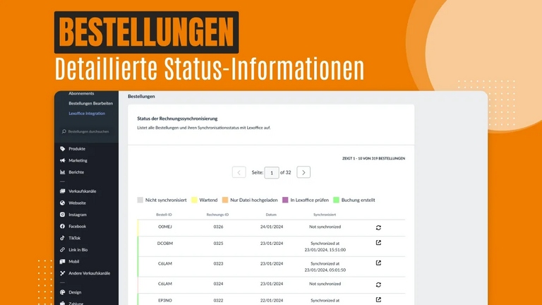 Übertragung von Bestelldaten: Jede Bestellung im Ecwid-Shop wird nahtlos und in Echtzeit in Lexware Office übertragen, um eine lückenlose und zeitnahe Erfassung aller Verkaufsvorgänge zu gewährleisten.