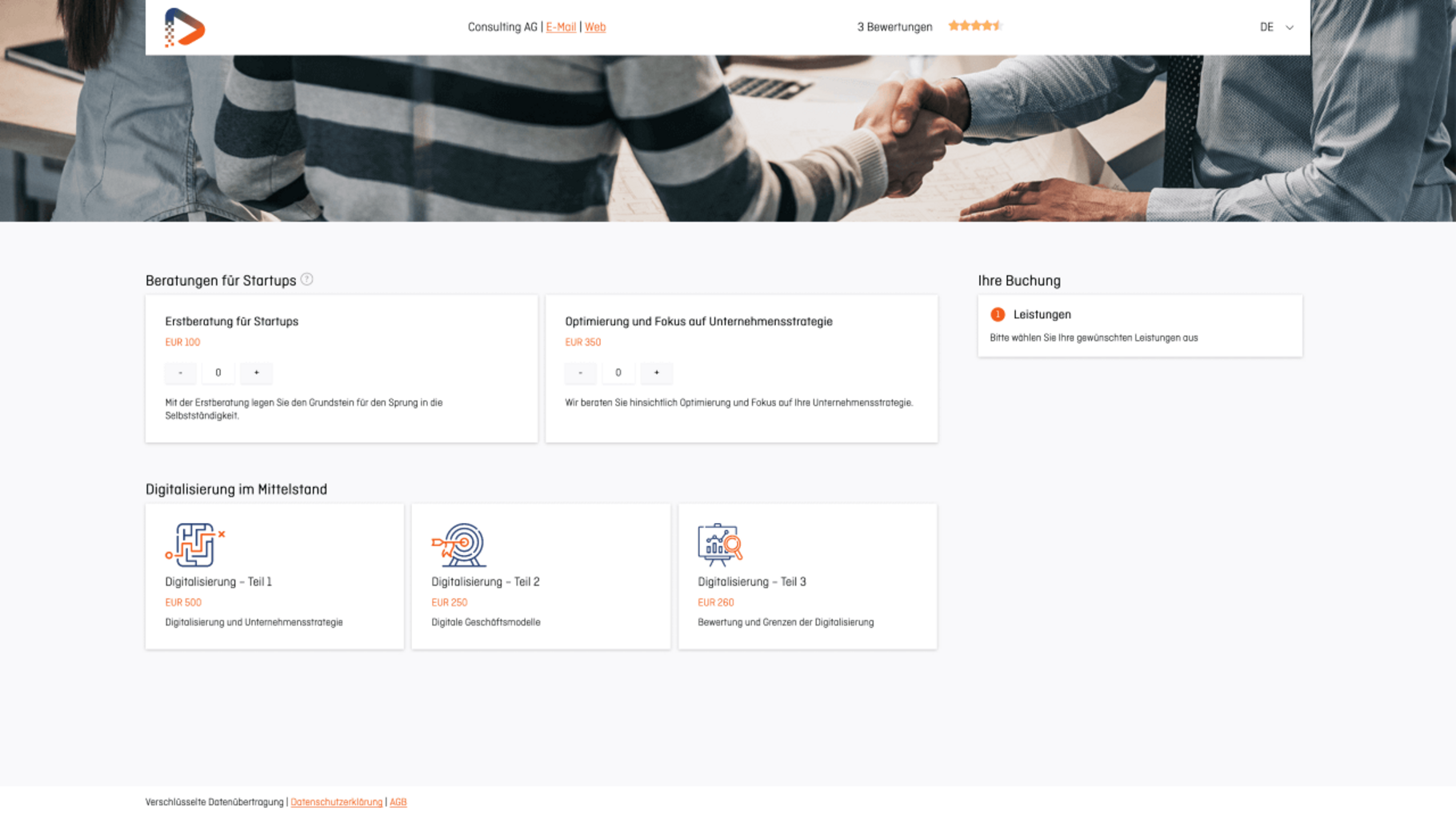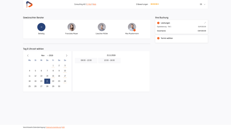 eTermin ist ein smarter und vielseitiger Online-Terminplaner für kleine und mittlere Unternehmen. Von der effizienten Online-Terminbuchung, zur Kundenverwaltung bis hin zu zielgruppenbasiertem Marketing ist alles in einem Produkt enthalten.