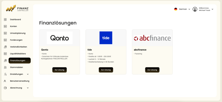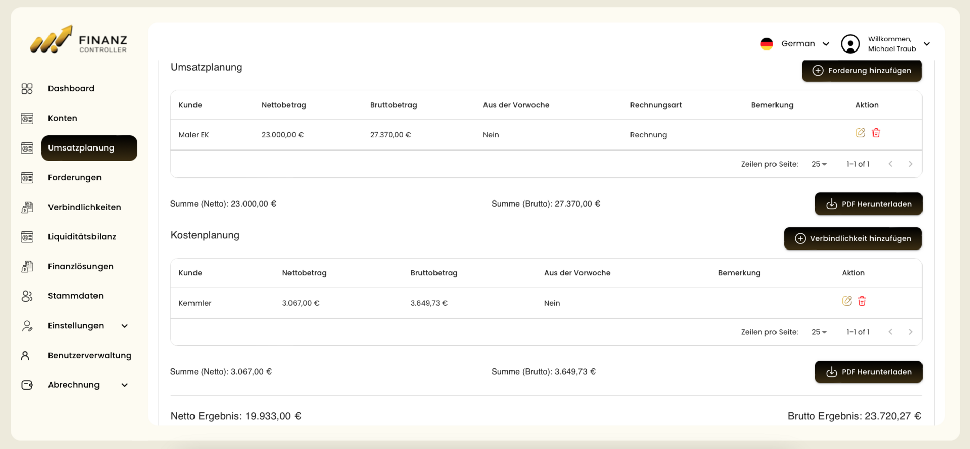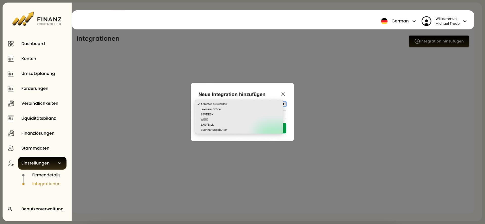 Finanz Controller erweitert Lexware Office mit einer Web-App um Liquiditätsplanung und Steuerungslogik für Handwerksbetriebe.