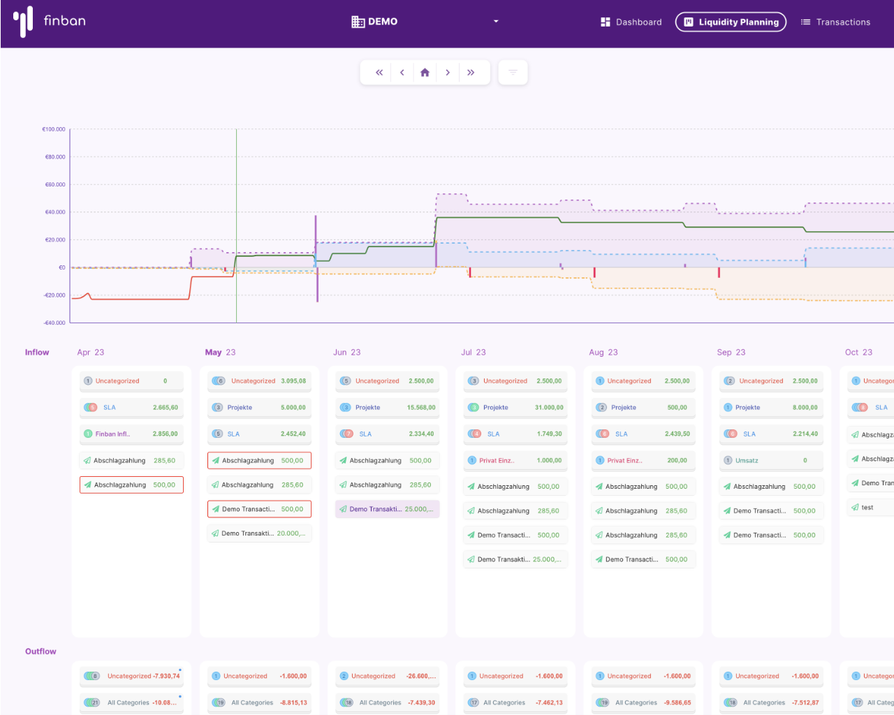Insgesamt unterstützt eine Liquiditätsplanungssoftware wie finban Unternehmen dabei, ihre Liquidität effektiv zu managen und mögliche Risiken frühzeitig zu erkennen und zu bewältigen. Dies trägt zur finanziellen Stabilität und zum Erfolg des Unternehmens bei.