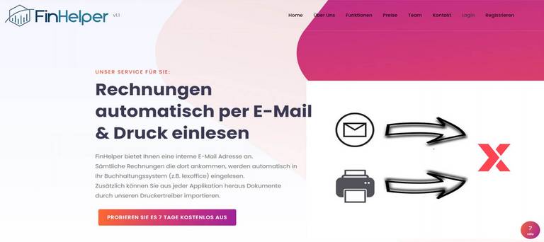 FinHelper ist eine Cloudbasierte Software „Made in Germany“, die deinen Alltag deutlich vereinfachen wird. Das beste daran ist, das Du uns keinen Zugriff auf deine Konten gewähren musst. Wir stellen Dir eine eigene interne E-Mail Adresse zur Verfügung. Diese teilst du dann deinen Servicepartnern als Rechnungsadresse mit. Rechnungen die Du weiterhin über deine Alltagsadresse erhältst, werden einfach mit einem Klick an uns weitergeleitet.