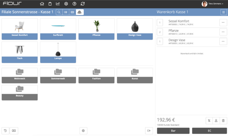 Einfach Cloud Kasse flour anbinden und sofort modern kassieren — in einer oder einer Vielzahl an Filialen.