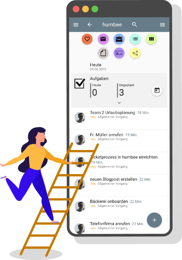 Menschen in Unternehmen verschwenden 1/3 ihrer Arbeitszeit mit der Suche nach Informationen. humbee macht Schluss damit! Arbeiten erfolgt in kompletten Vorgängen, die alles Wissenswerte in Echtzeit bereithalten. Kein Suchen in verschiedenen Datentöpfen, keine zeitraubenden Spontanbesprechungen mehr. Weiter unten in der Beschreibung sind die Einsatzgebiete von humbee aufgeführt.
