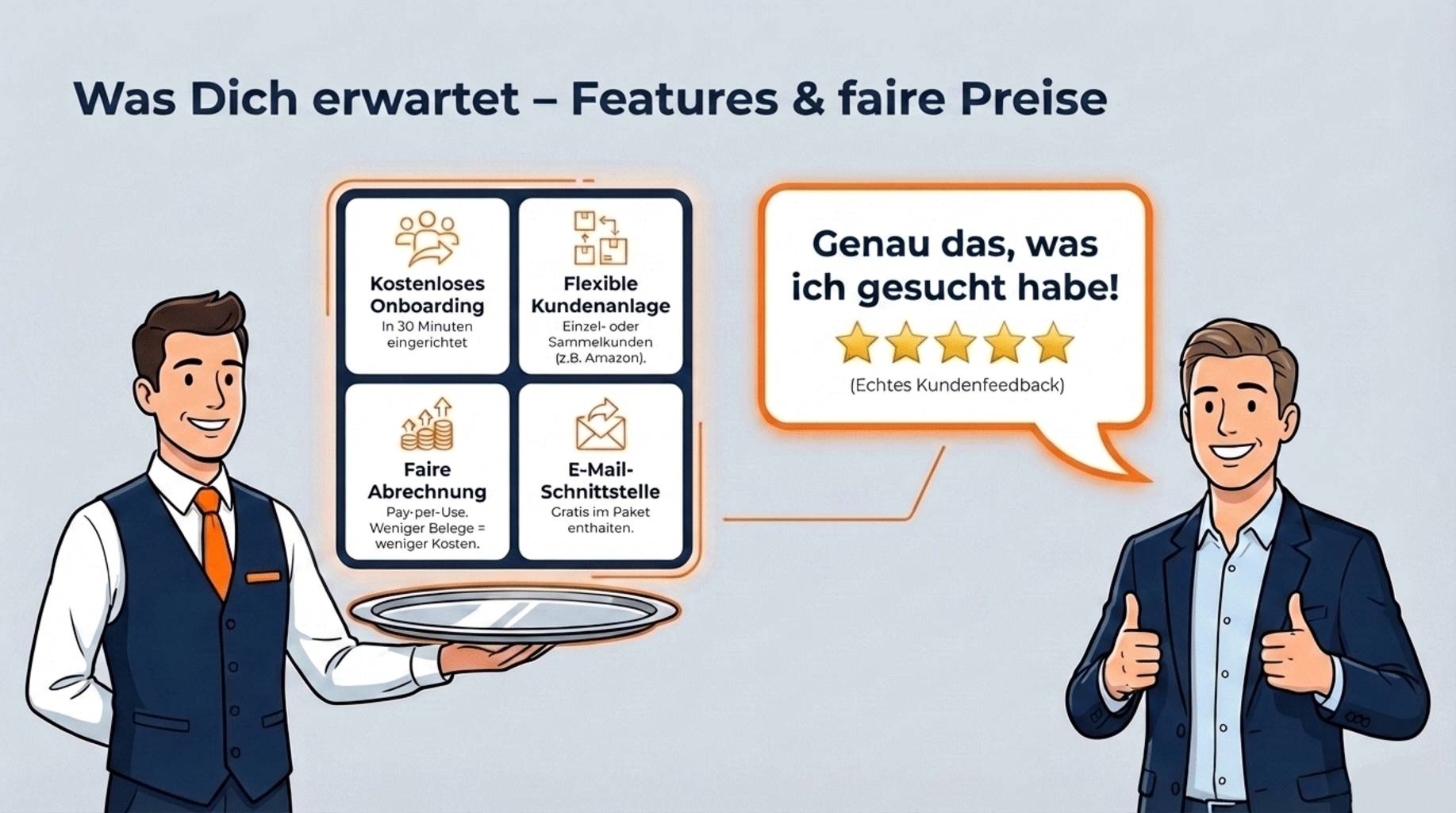 - Faire Preisgestaltung: Die Abrechnung erfolgt monatlich und richtet sich flexibel nach der tatsächlichen Anzahl der übertragenen Belege.