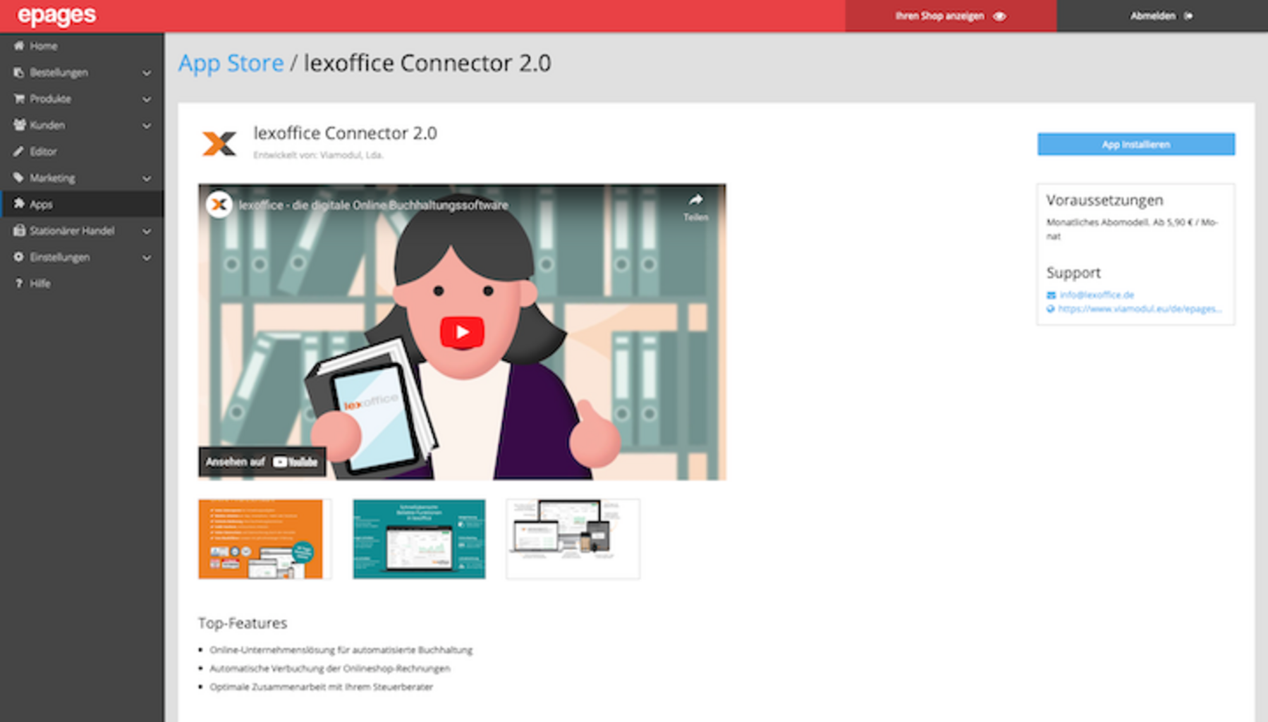 Lexware Office ist direkt im App Store des ePages-Shops integriert. Dadurch können Shop-Daten mühelos verknüpft und für eine komfortable Buchhaltung synchronisiert werden.