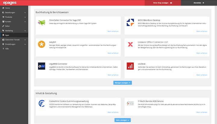 Bitte beachte, dass die Nutzung der Erweiterung gemäß den Nutzungsbedingungen, den AGB und der Datenschutzerklärung von ePages erfolgt.