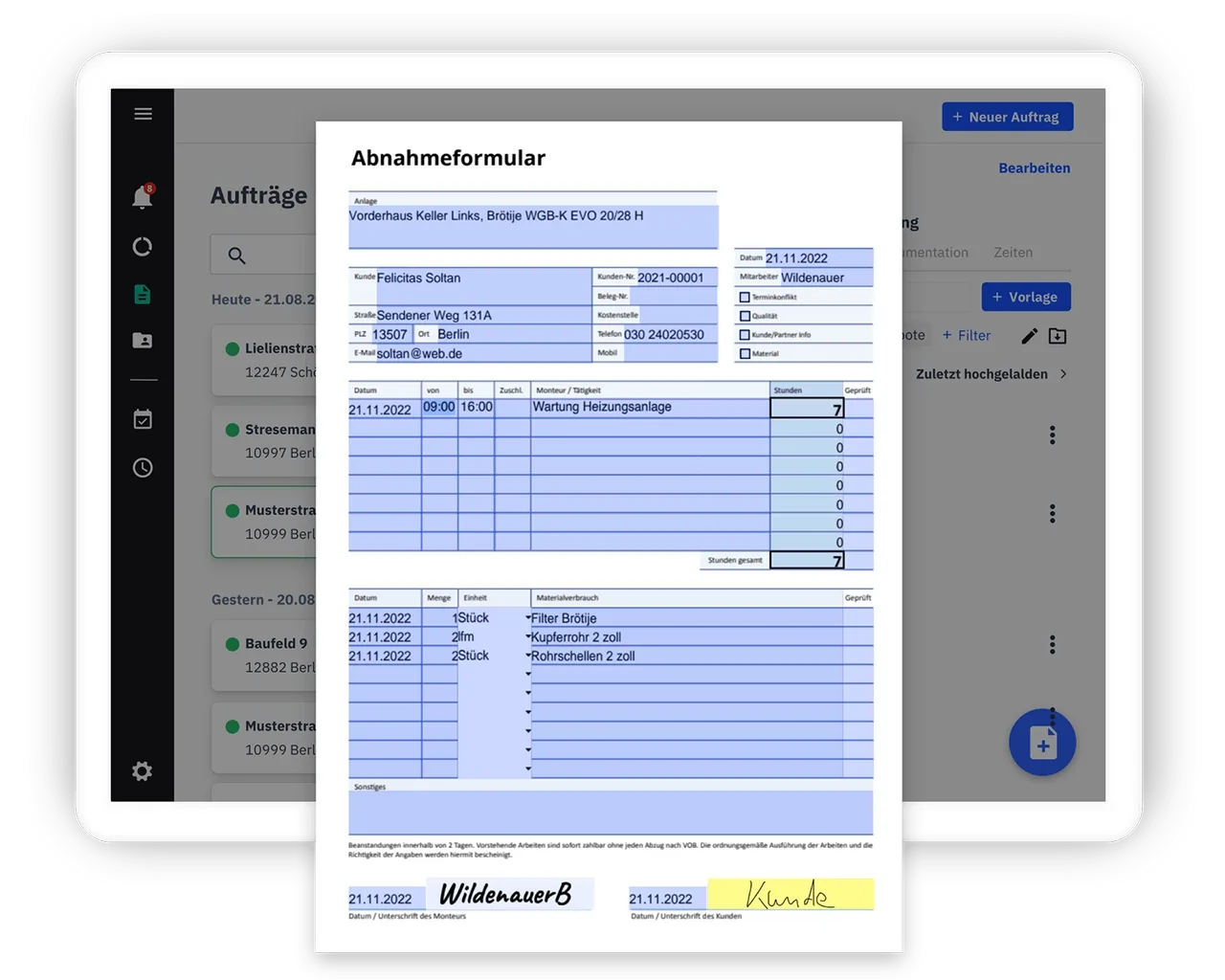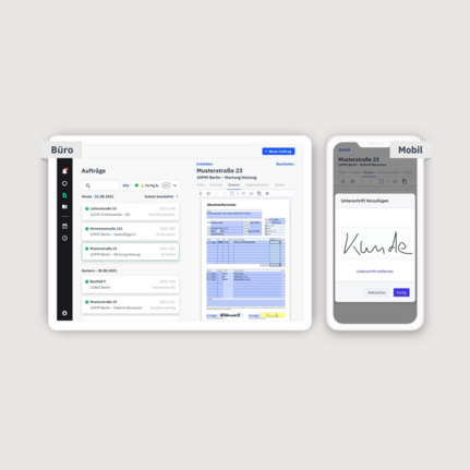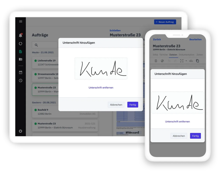 - Deine Formulare lassen sich direkt am Tablet oder Smartphone beim Kundentermin ausfüllen und unterschreiben.