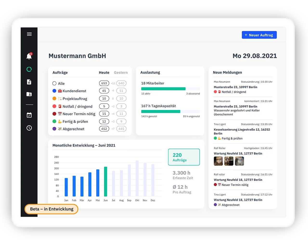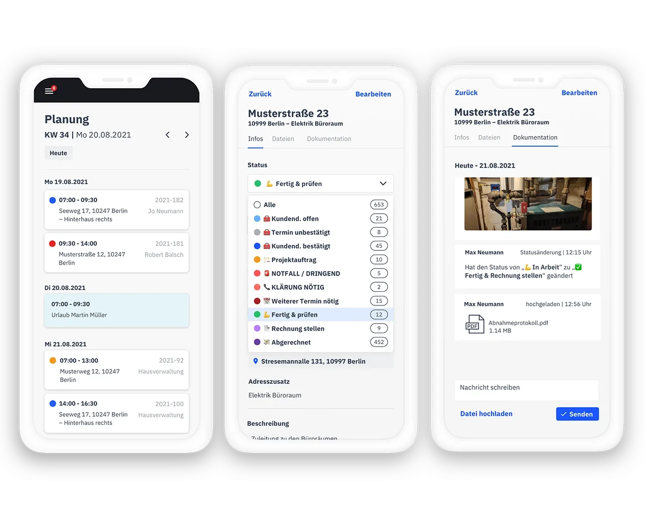 - Du reduzierst die Zeit für die Auftragsplanung, verhinderst Leerzeiten und reagierst schnell auf kurzfristige Änderungen.