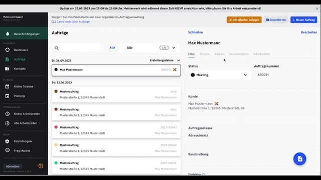 Die Meisterwerk App dient als digitale Informationszentrale für Handwerksbetriebe und vereint Einsatzplanung, Dokumentation sowie Kommunikation rund um Aufträge und Termine. Über die Schnittstelle zu Lexware Office können Kunden- und Auftragsdaten mit einem Klick in die Meisterwerk App übernommen werden. Dieser Prozess reduziert den Aufwand, sodass Aufträge direkt angelegt, verplant und weitere Informationen in der App hinterlegt werden können. Die Daten stehen der Belegschaft auf allen Geräten zur Verfügung und werden in Echtzeit aktualisiert.