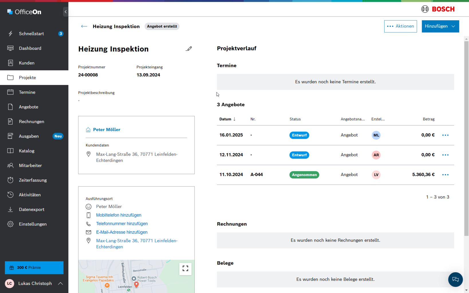 Bosch OfficeOn ist die einfache Handwerkersoftware mit mobiler App. Erledige Angebote, Rechnungen, Terminkoordination, Zeiterfassung und Dokumentation einfacher denn je!