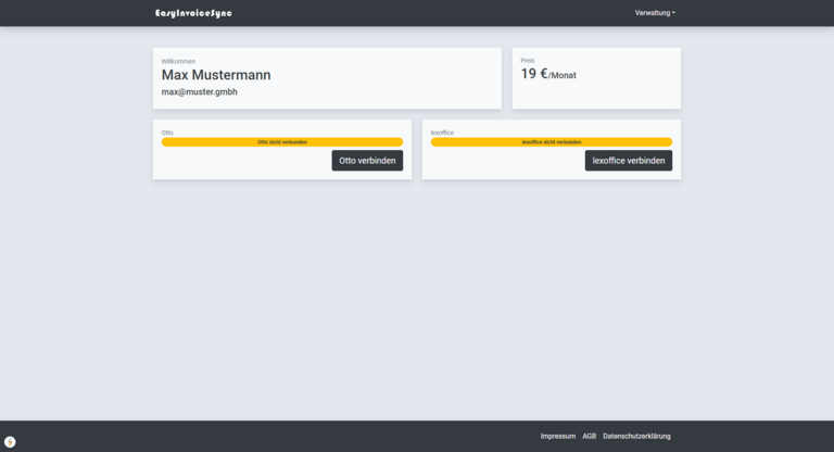 Zur Nutzung der Schnittstelle zwischen Lexware Office und EasyInvoiceSync benötigst du lediglich einen eigenen EasyInvoiceSync Account sowie einen Otto Seller Account. Die Verknüpfung ist bereits während der 7-tägigen Testphase möglich!