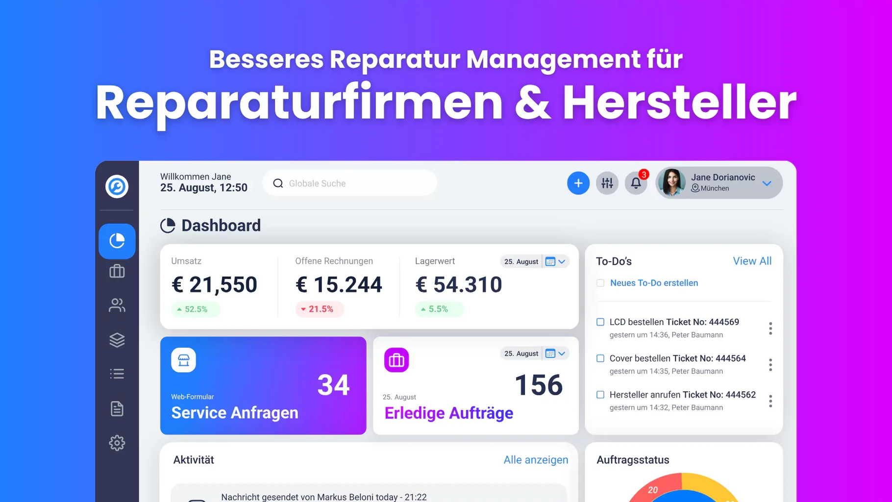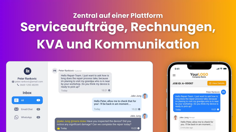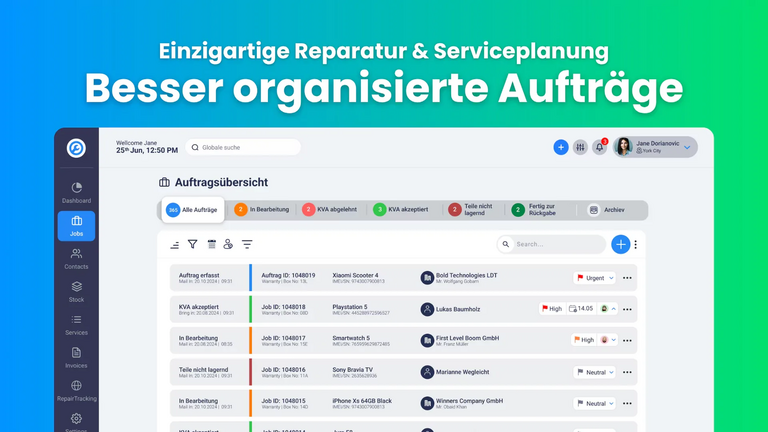 - Partner-Portal für Kunden: Bieten Sie Ihren Kunden ein übersichtliches Portal zur Reparatureinsendung, Statusverfolgung und Kommunikation.