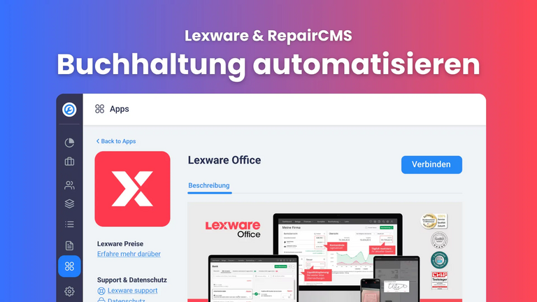 • Automatische Übertragung neuer Rechnungen in Lexware • Einheitliche Datenbasis für Buchhaltung und Reparaturmanagement • Zeitersparnis und weniger manuelle Arbeitsschritte