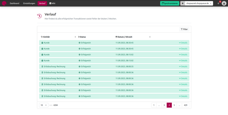 shopqueue sorgt als Webservice dafür, dass alle Umsätze aus shopware 6 automatisch in Lexware Office gebucht werden.