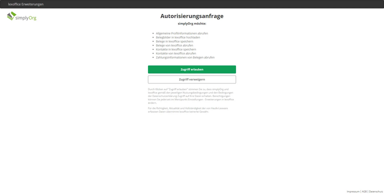 - Die Integration von simplyOrg mit deinem Lexware Office-Konto ist einfach und schnell und dauert nur 5 Minuten.