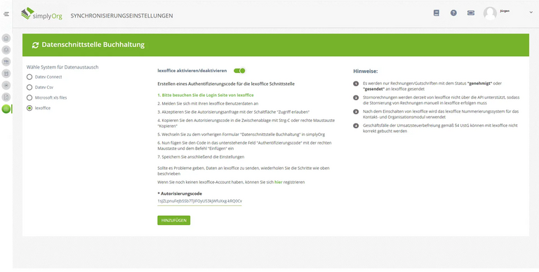 - Die automatische Synchronisierung von Rechnungen, Gutschriften und Kunden vereinfacht die Verwaltung von simplyOrg und lexoffice.