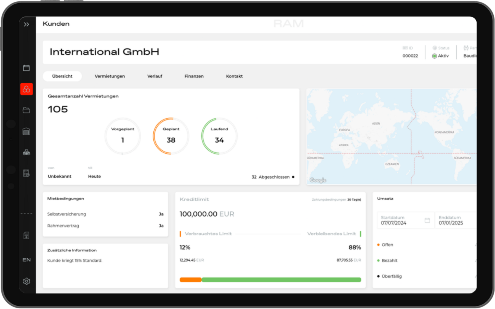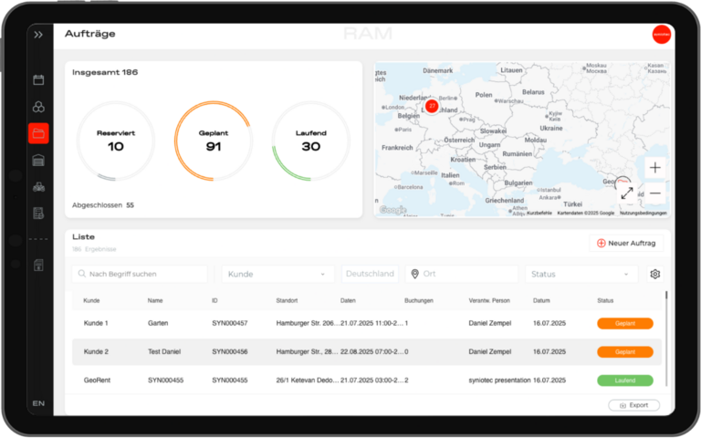 syniotec’s RAM (= Rental Asset Manager) ist eine Softwarelösung für Baumaschinenvermieter, Händler, & Dienstleister, die eine Flotte aus mit Maschinen, Geräten und mobilen Assets besitzen. Die Plattform unterstützt bei Einsatzplanung, Wartung, Prüfungen, Kostenstellenzuordnung und Dokumentation. Durch die Integration mit Lexware Office lassen sich operative Informationen strukturiert in kaufmännische Prozesse überführen. Das schafft Transparenz, reduziert Verwaltungsaufwand und sorgt für eine saubere Datenbasis zwischen operativem Tagesgeschäft und Buchhaltung.