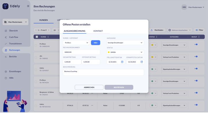Tidely wurde nicht nur auf der Grundlage des Know-hows unseres Teams, sondern auch auf der Basis unseres Kundenfeedbacks entwickelt. Bei Tidely findest du alle wichtigen Funktionen für dein effektives Liquiditätsmanagement; dabei haben wir stets auf eine einfache und intuitive Bedienung geachtet.
