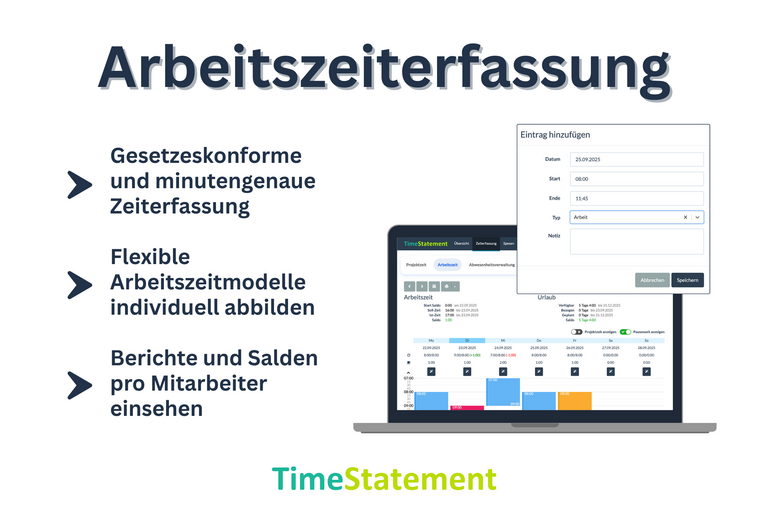 TimeStatement macht Zeiterfassung so einfach wie nie – für weniger Aufwand und mehr Rentabilität im Arbeitsalltag.