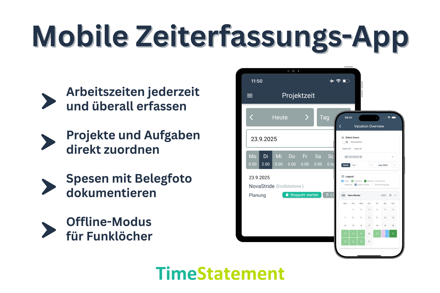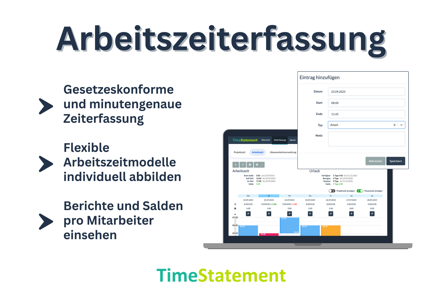 TimeStatement macht Zeiterfassung so einfach wie nie – für weniger Aufwand und mehr Rentabilität im Arbeitsalltag.