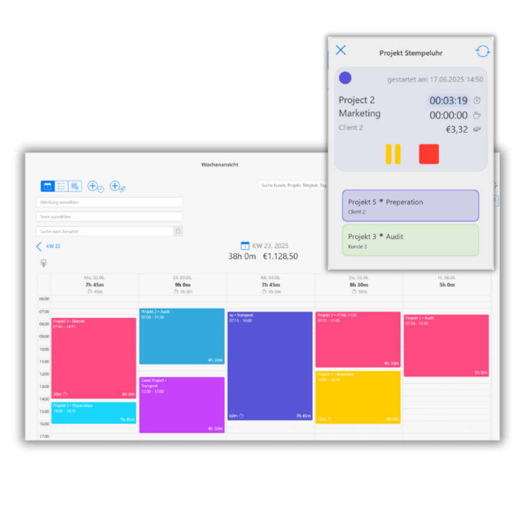 - Projektzeiterfassung mit integrierter Rechnungstellung