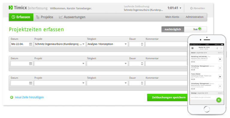 - Du und deine Mitarbeiter erfassen deine Projektstunden in Timicx.