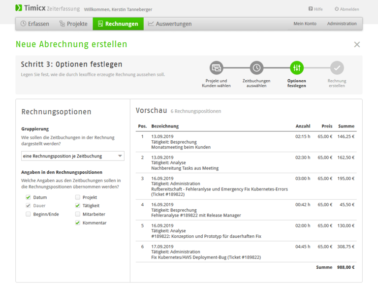 Stunden erfassen mit Timicx, Rechnungen stellen mit Lexware Office