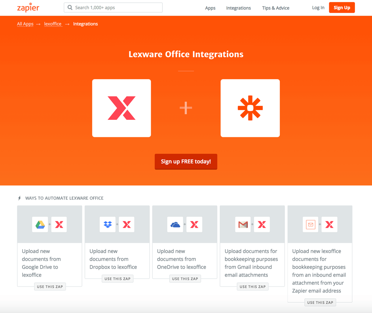Zapier verbindet Lexware Office mit vielen weiteren Anwendungen (z.B. Dropbox, Gmail,…)