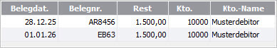 - Im Dezember 2025 wurde eine Ausgangsrechnung auf das Debitorenkonto 10000 gebucht.