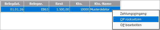 - Markieren Sie den offenen Posten der Eröffnungsbuchung mit der rechten Maustaste.