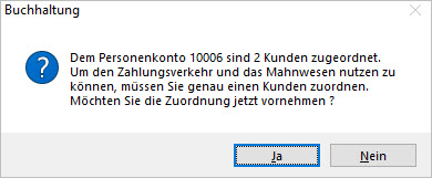 Wenn Sie diese Abfrage verneinen, fehlt die Zuordnung eines Kunden (Lieferanten). Stellen Sie dann die Zuordnung nachträglich über die OP-Liste her.